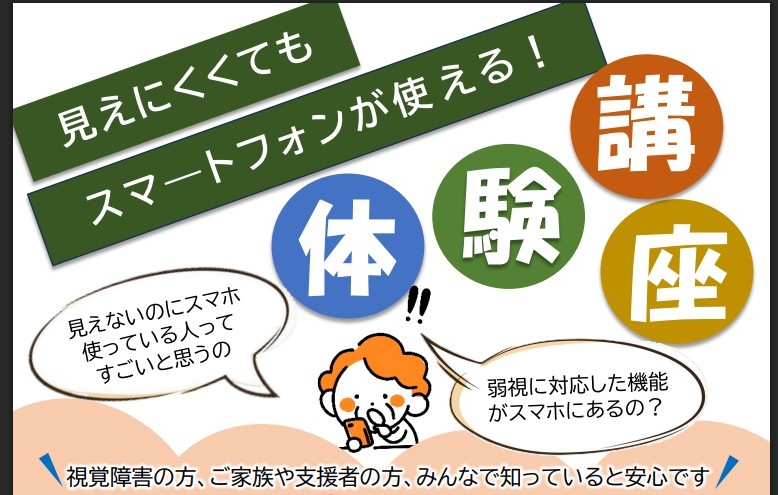 見えにくい方やその支援者やご家族を対象にスマートフォンの使い方を体験します。